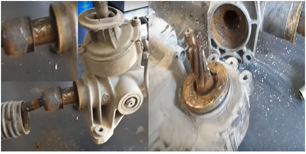 У 70-80% випадків усі проблеми з рейкою починаються після потрапляння води, удару (ремонту ходової частини авто, потрапляння в яму, участь у дтп), сильної корозії (виїдає вузли прилягання, внаслідок чого з’являється великий проміжок, люфти, сторонні звуки в процесі повороту керма і їзди на різних поверхнях). Усі ці випадки несуть ризик для експлуатації автомобіля. Приклади корозії Фото №4