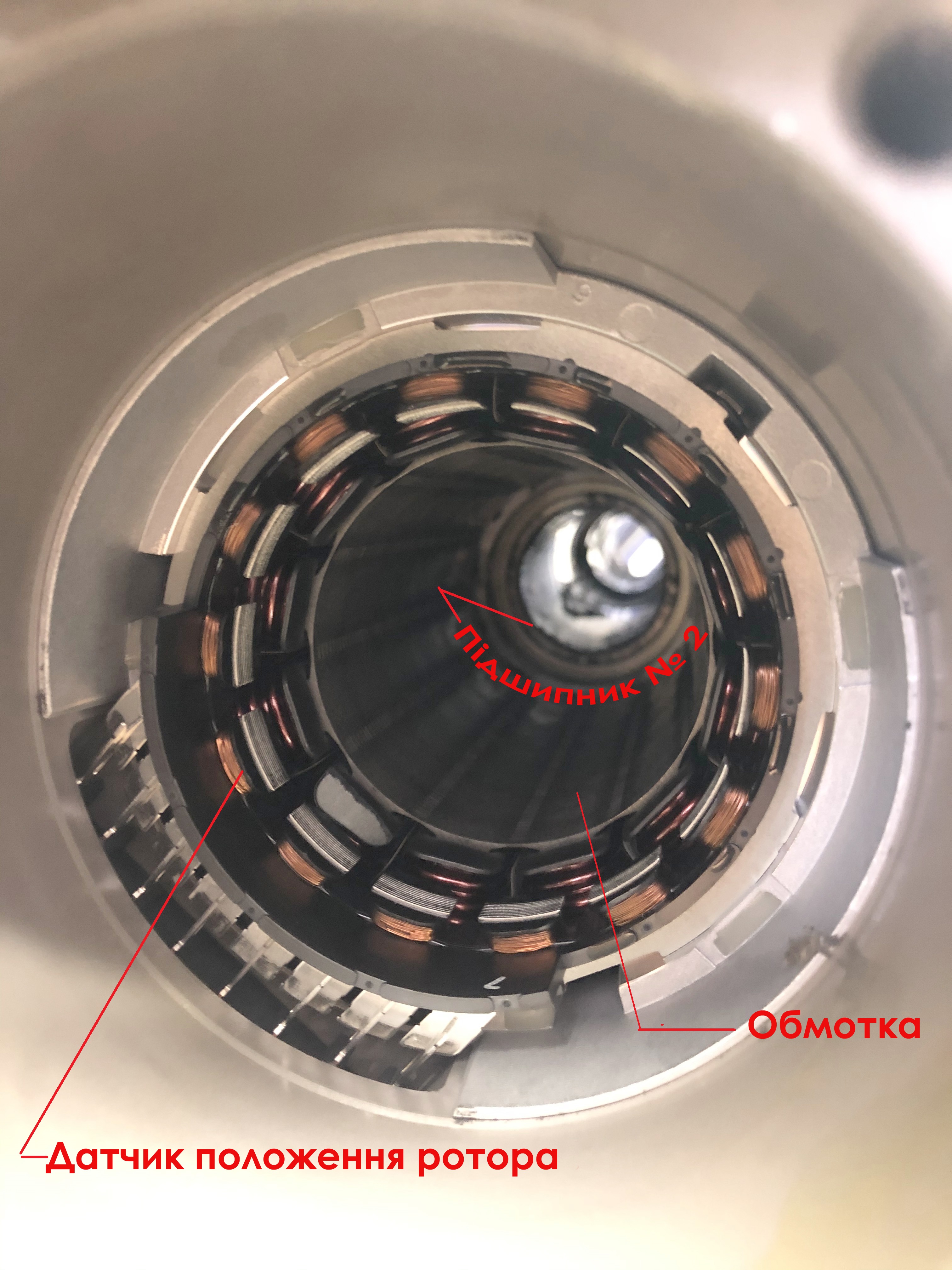 - Корпус очищаємо від вологи і корозії, якщо потрібно замінити підшипник №2 (зображення №1) дістаємо обмотку і датчик положення ротора. На зображенні № 5 чітко видно будову рейки. Ми можемо замінити кожен елемент окремо, в залежності від необхідності чи стану елемента агрегата.